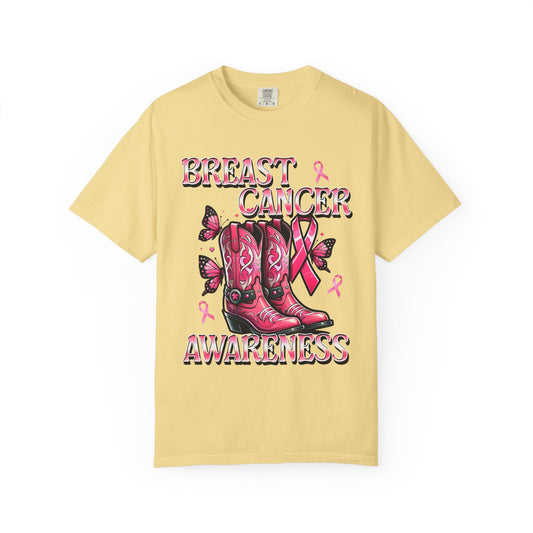 Breast Cancer Awareness T-shirt, Cowboy Boots Design, Supportive Tee, Gift for Her, Pink Ribbon Shirt, Charity Apparel