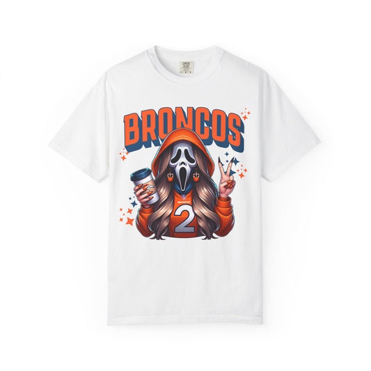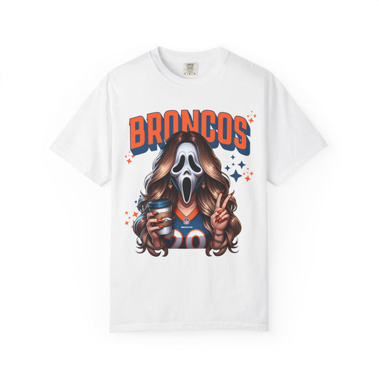 Unisex Garment-Dyed T-Shirt with Ghost Face and Football Design, Perfect for Game Day, Halloween, Casual Wear, Fans, Gifts